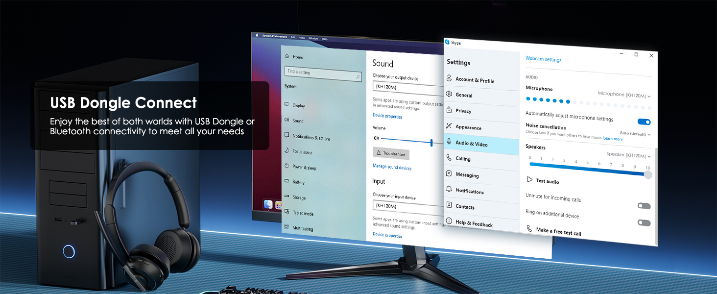 · Adjustable Comfort for Extended Wear: This Bluetooth headset with mic is designed for long-lasting comfort. Featuring a customization headband and plush protein ear cushions, this headset molds comfortably to all head sizes. The lightweight build and 270° rotatable ear cups prevent pressure points and hair tangling, making it ideal for all-day use. 【NOTE】The USB dongle is only compatible with Windows system, so the KH120M headset can't be used for desk phones or landlines. Remove the dongle when the headset is not in use; insert it gain when the headset is active